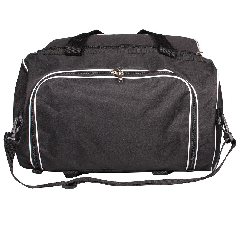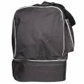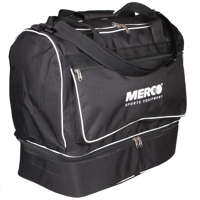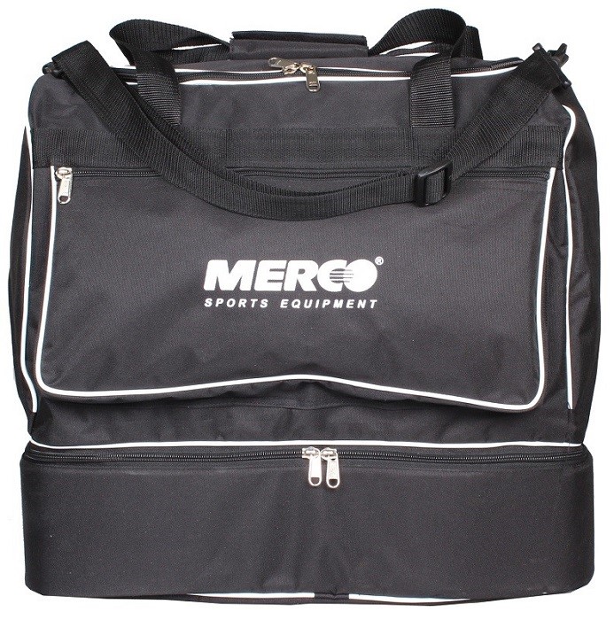 Veľkoobjemová futbalová taška Merco Vám pomôže dopraviť na ihrisko všetko, na čo si pred odchodom na tréning alebo zápas spomeniete. Táto športová taška je štandardne rozdelená na dve časti. Spodná, 13 centimetrov vysoký úložný priestor uzatvárateľný dvojitým zipsom, je určený pre obuv a špinavé prádlo. Hlavný horný priestor má opäť dvojitý zips a neskutočný objem, ktorý doslova pohltí všetky Vaše vybavenie. Ďalej je taška vybavená dvoma úchytmi do ruky, ktoré sa spájajú suchým zipsom, odnímateľným ramenným popruhom s polstrovaním a bočné vreckom pre osobné drobnosti alebo napríklad na desiatu.