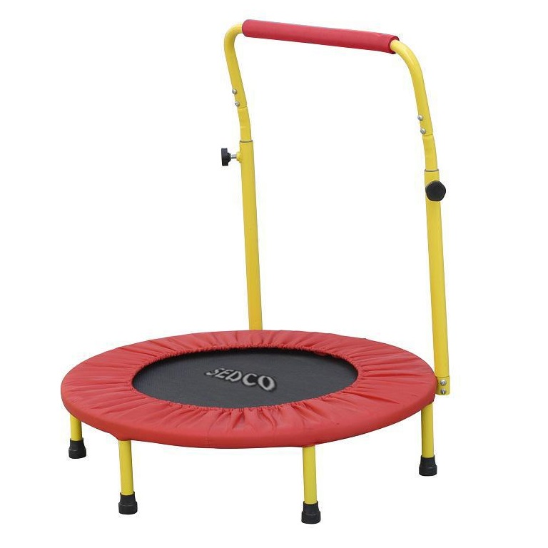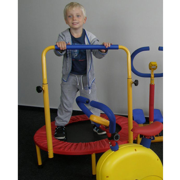 Detská trampolína s madlom pre deti od 4 do 8 rokov - nosnosť do 60 kg. Ideálny doplnok kolekcie mechanických fitness strojov pre detské kútiky, fitness centrá, materské škôlky a pod. Slúži pre rozvoj pohybu a telesnej kondície.