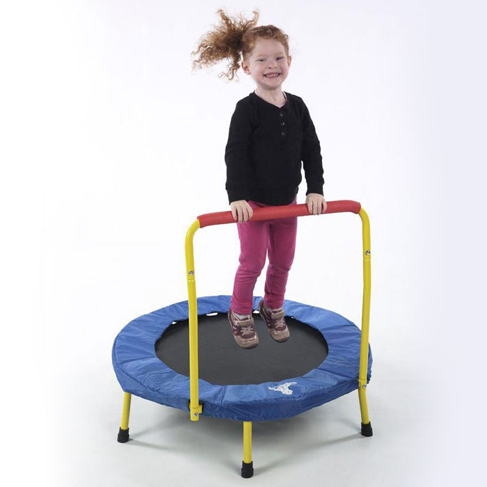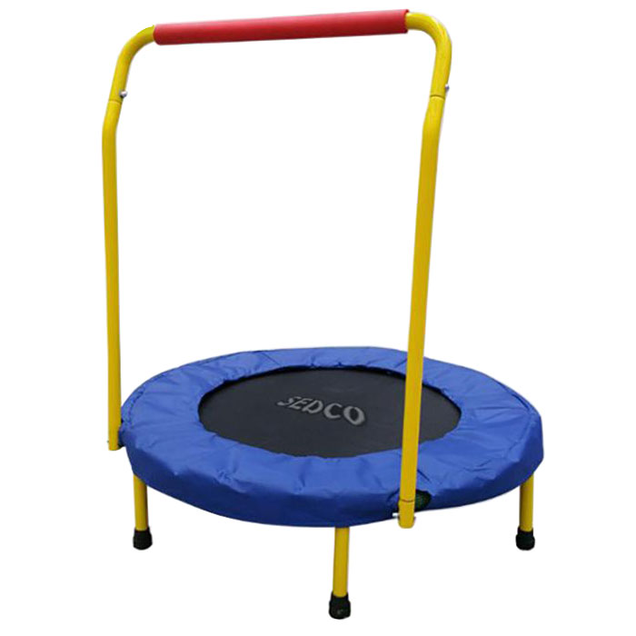 Detská trampolína s madlom pre deti od 4 do 8 rokov - nosnosť do 60 kg. Ideálny doplnok kolekcie mechanických fitness strojov pre detské kútiky, fitness centrá, materské škôlky a pod. Slúži pre rozvoj pohybu a telesnej kondície.