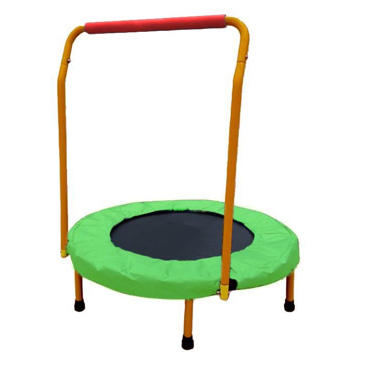 Detská trampolína s madlom pre deti od 4 do 8 rokov - nosnosť do 60 kg. Ideálny doplnok kolekcie mechanických fitness strojov pre detské kútiky, fitness centrá, materské škôlky a pod. Slúži pre rozvoj pohybu a telesnej kondície.